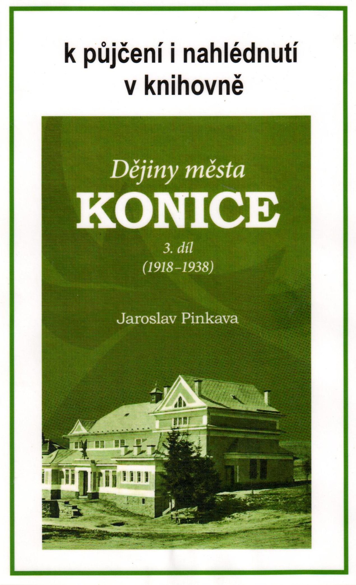 Pro naše čtenáře nabízíme k půjčení i k nahlédnutí Dějiny města Konice 3. díl (1918-1938). Pokračování předchozích dílů Jaroslava Pinkavy vás zavede do období první republiky a uzavírá obsáhlou práci regionálního historika a spisovatele. Všechny svazky jsou významným příspěvkem k poznání místní historie a dodnes vyhledávaným zdrojem informací. Autor se ve třetím díle zaměřil nejen na hospodářské, sociální a politické poměry, ale i na každodennost a kulturní život města.